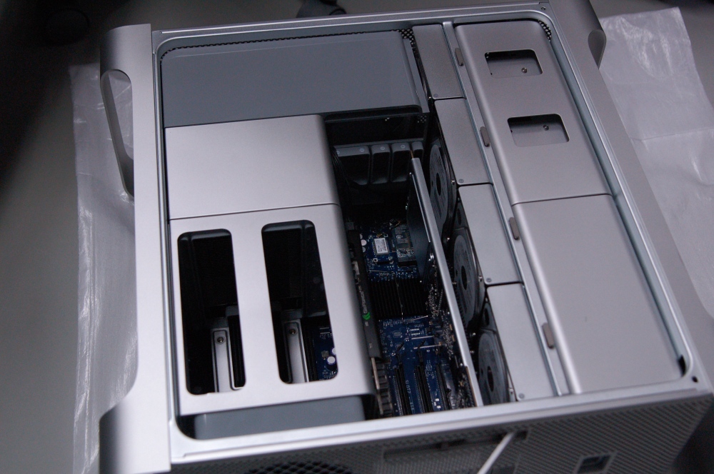 Mac Proのメモリソケットは着脱可能でメモリの装着しやすい構造でした。